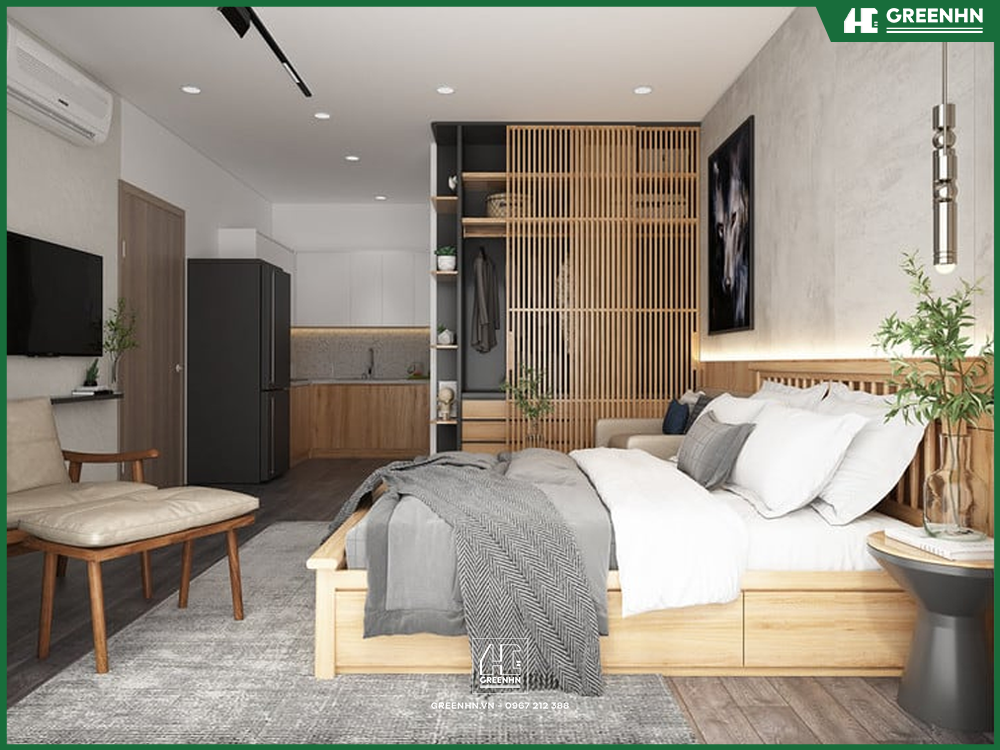 Giải pháp GreenHN: Sử dụng công nghệ Sàn phẳng không dầm (Sàn hộp) giúp cách âm sàn hiệu quả. Tường ngăn giữa 2 căn hộ nên xây tường 220mm hoặc sử dụng vách thạch cao có bông khoáng tiêu âm ở giữa.