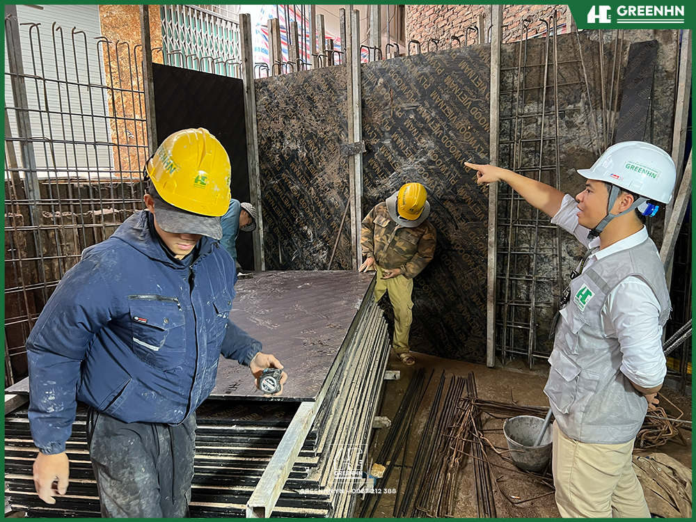 Giám sát chặt chẽ từ A-Z: Kỹ sư GreenHN túc trực, kiểm soát mọi công đoạn, từ chuẩn bị bề mặt đến nghiệm thu hoàn thiện.