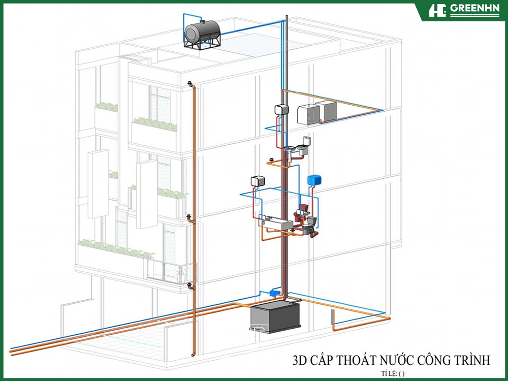 Trục thoát nước đen (Black water): Dành riêng cho chất thải từ bồn cầu xuống bể phốt. Ống này cần độ dốc lớn và ít điểm ngoặt.