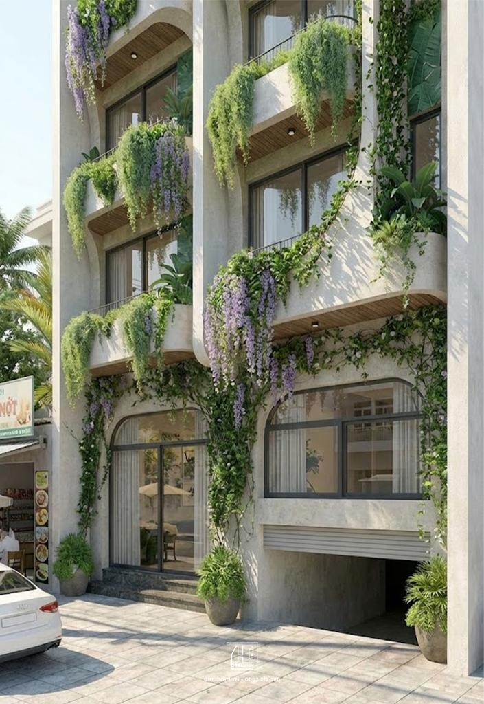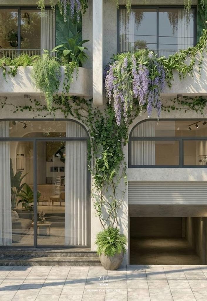 Mặt tiền xanh tạo cảm xúc tốt ngay từ lần xem đầu tiên
