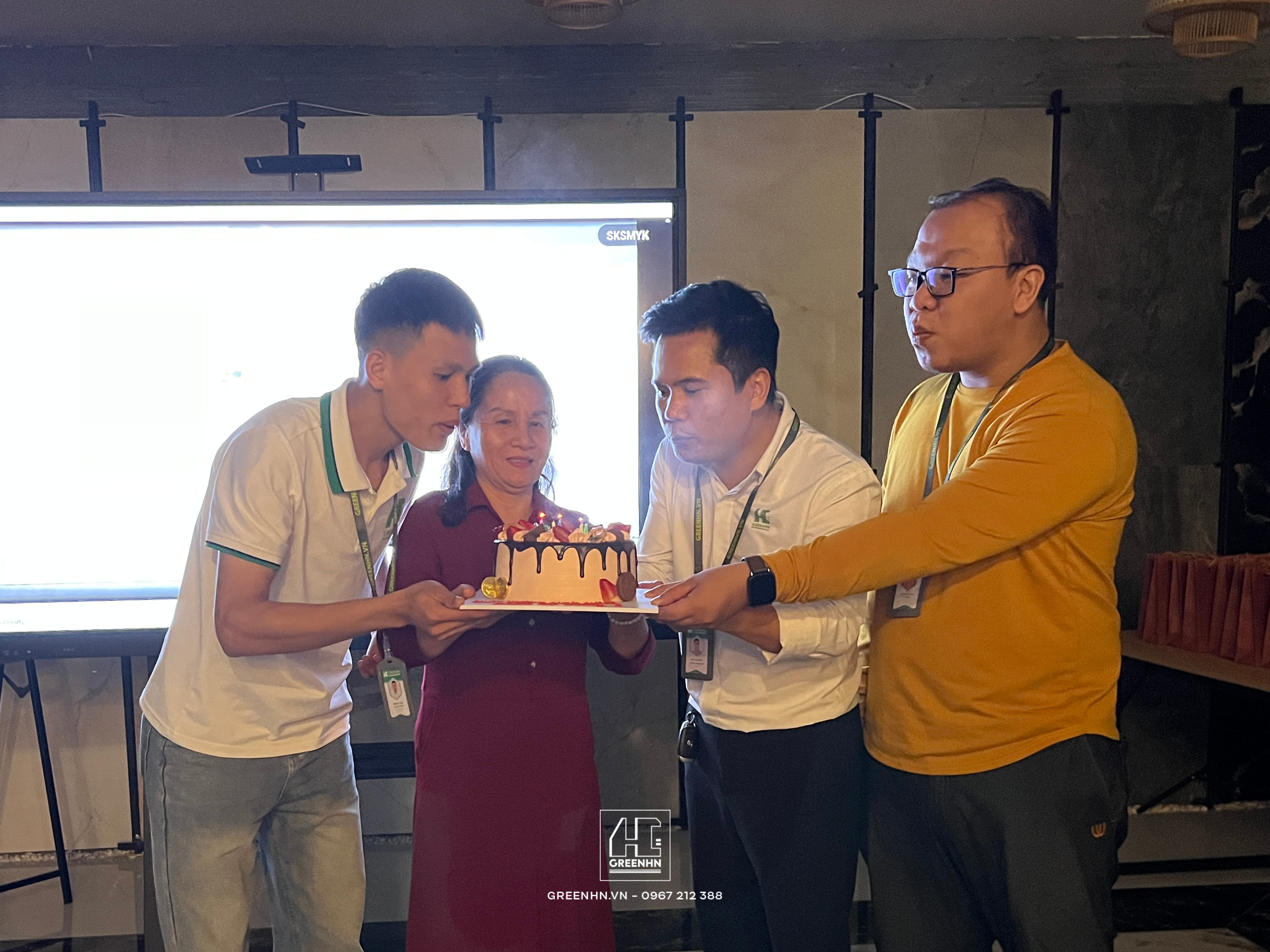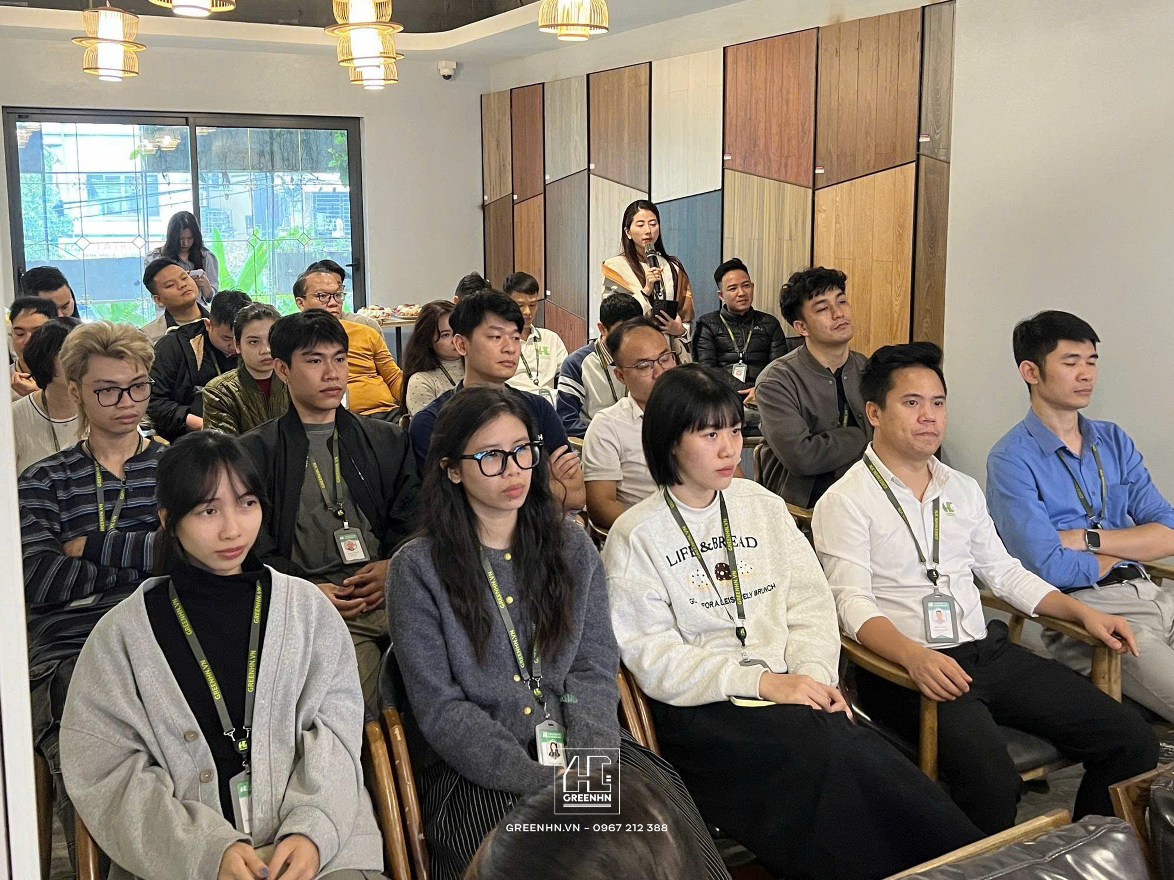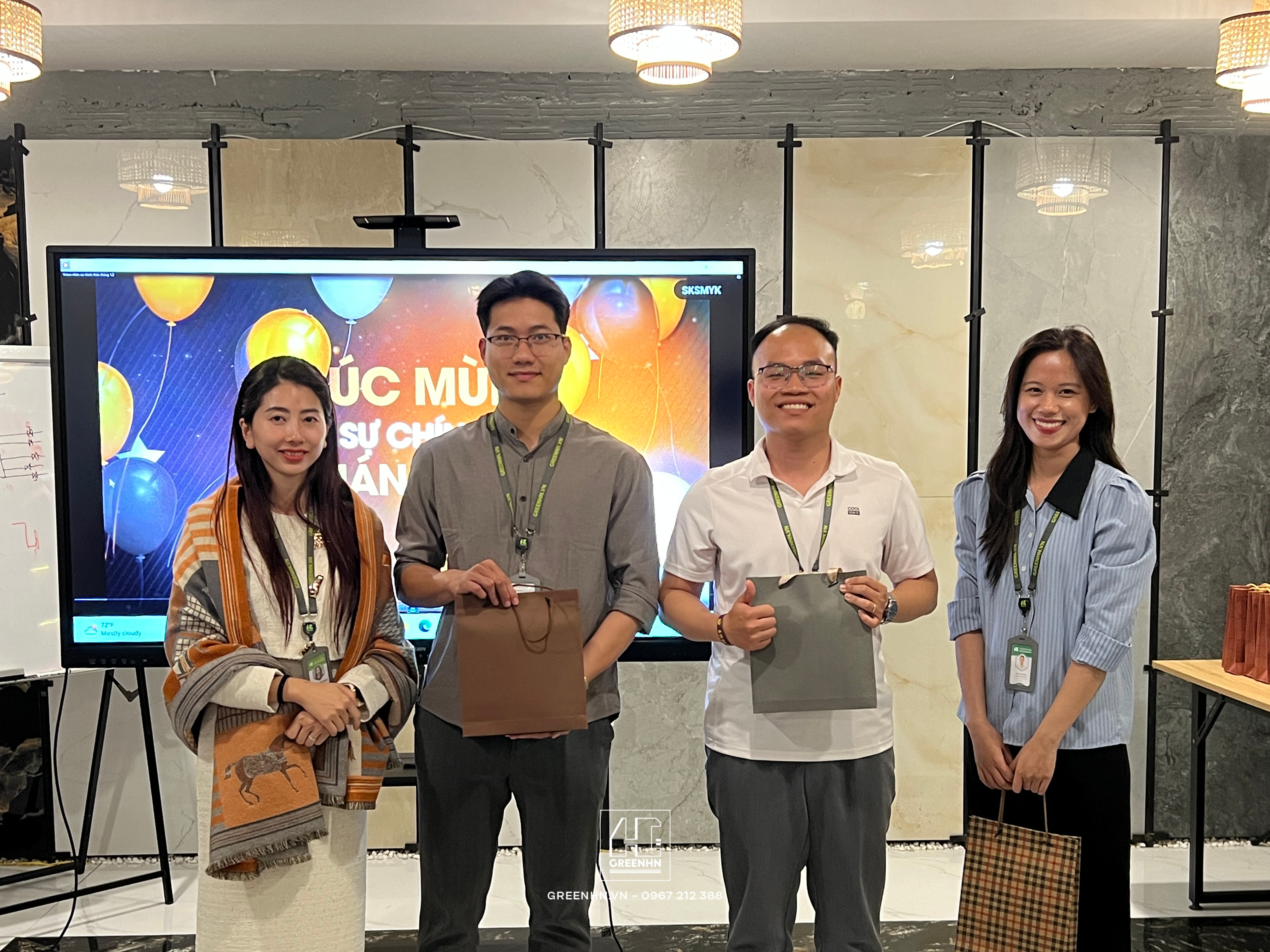 Chương trình mở đầu bằng phần chia sẻ ngắn về văn hóa doanh nghiệp và tinh thần đồng hành của đội ngũ GreenHN. Đây cũng là dịp để toàn thể nhân sự cùng nhìn lại hành trình phát triển của công ty, nơi mỗi cá nhân đều đóng vai trò quan trọng trong sự phát triển chung.