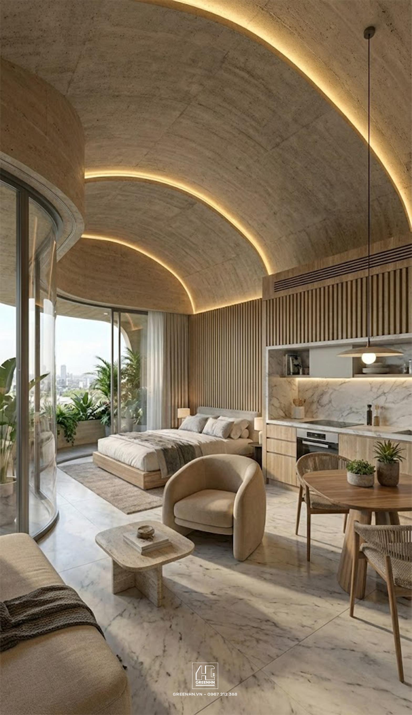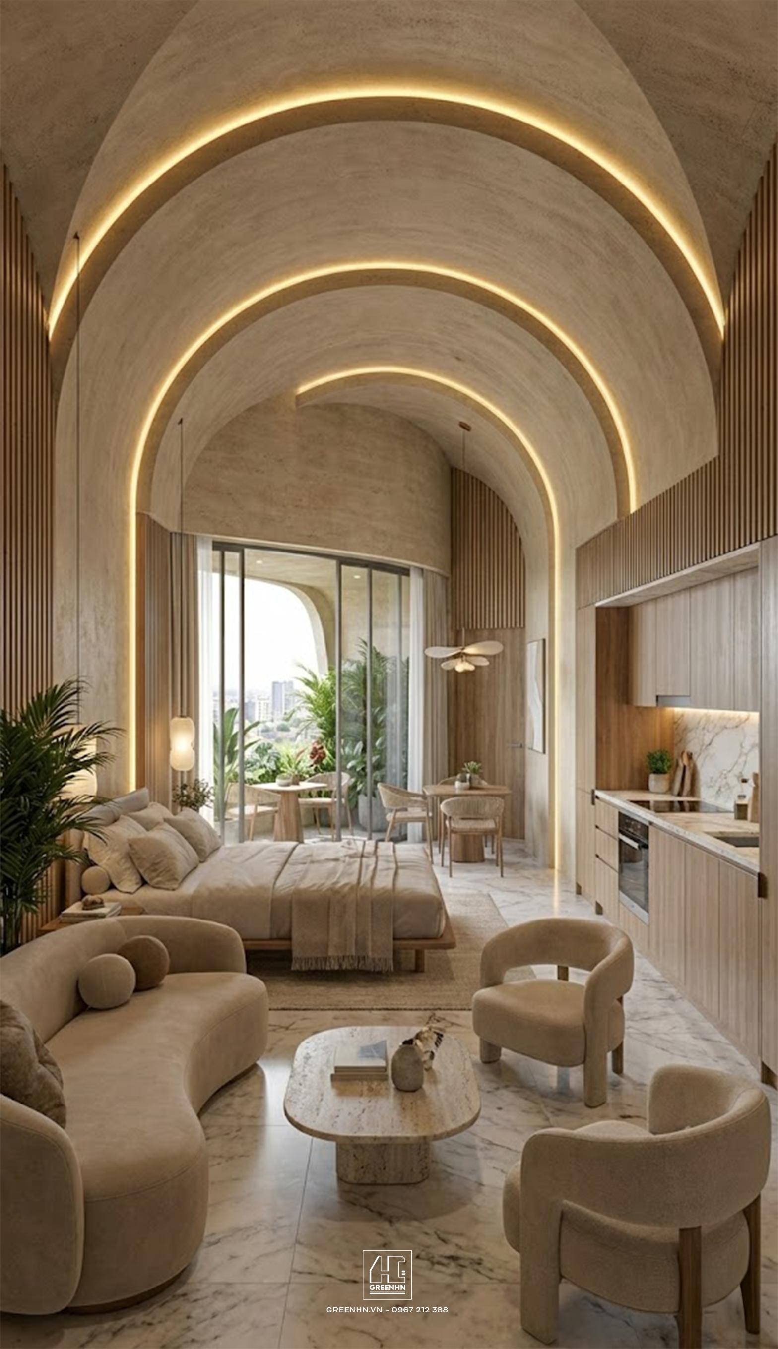 1. Ngôn ngữ hình khối: Đương đại – hữu cơ – mềm hóa chiều cao