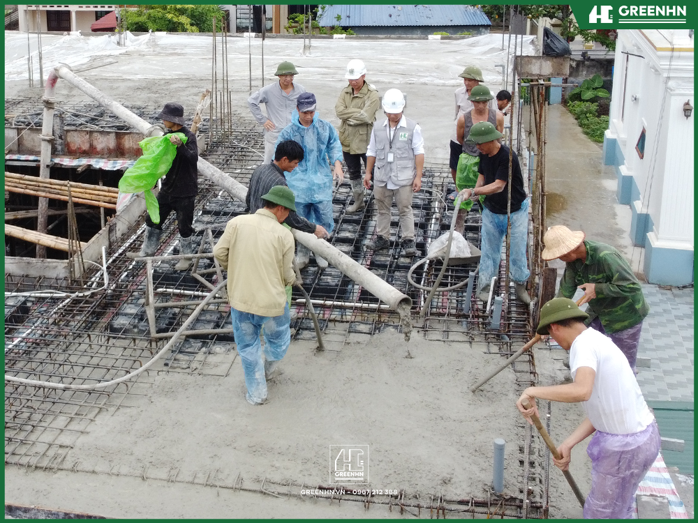 Kiểm Soát Kỹ Thuật Chặt Chẽ: Đội ngũ Kỹ sư Giám sát của GreenHN kiểm tra từng bước thi công, đặc biệt là các hạng mục ẩn (kết cấu, cốt thép), đảm bảo mọi yếu tố kỹ thuật đều tuân thủ TCVN và Bản vẽ Thiết kế đã được duyệt.