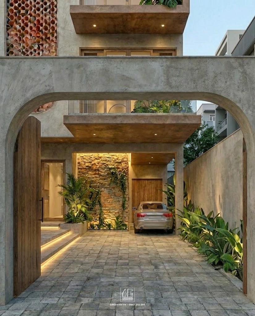 Phong cách kiến trúc: Nhiệt đới hiện đại kết hợp Thô mộc (Tropical Modernism mixed Rustic & Brutalism)