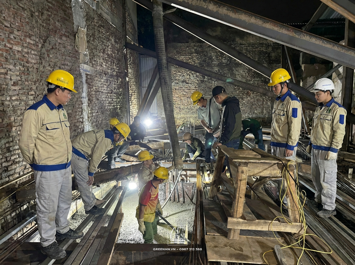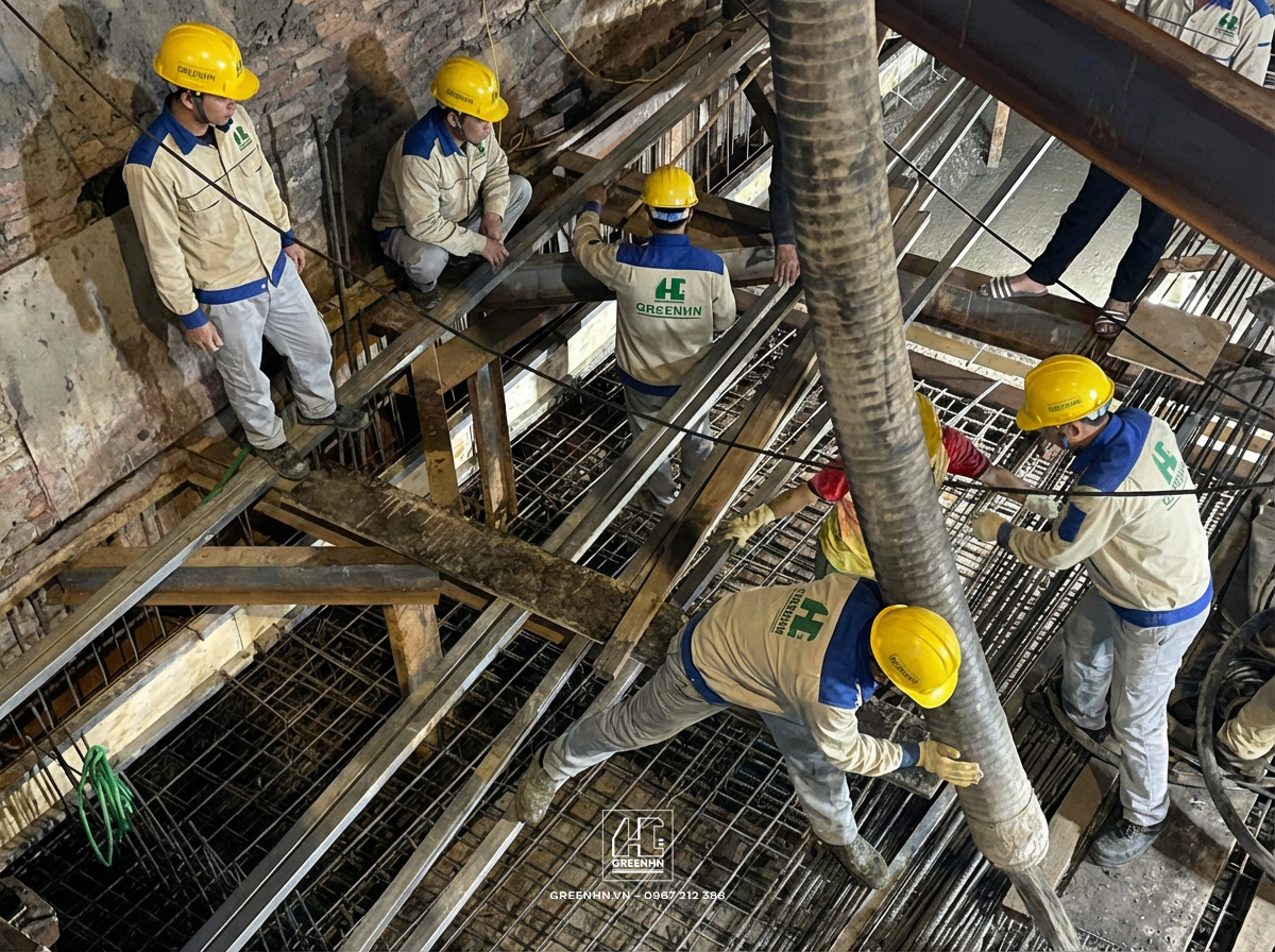 Ca đổ bê tông nhà anh Minh đã kết thúc an toàn, nhanh gọn nhờ sự tính toán kỹ lưỡng của Ban chỉ huy công trường GreenHN. Những khối bê tông vững chãi hôm nay sẽ là nền tảng cho ngôi nhà phố kinh doanh sầm uất mai sau.