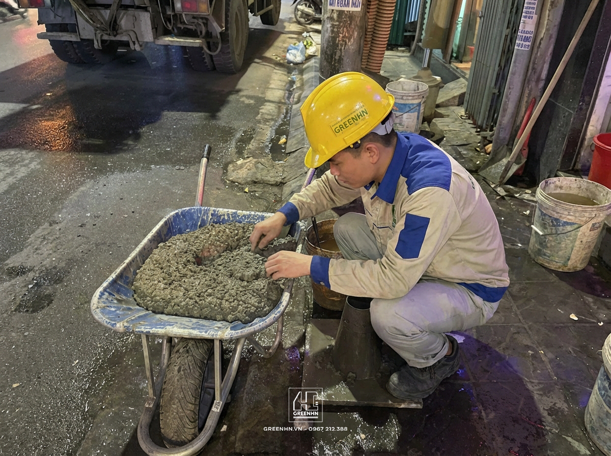 Đổ bê tông nhà mặt phố tuy thuận lợi về tiếp cận nhưng áp lực về an toàn giao thông và vệ sinh môi trường là rất lớn.
