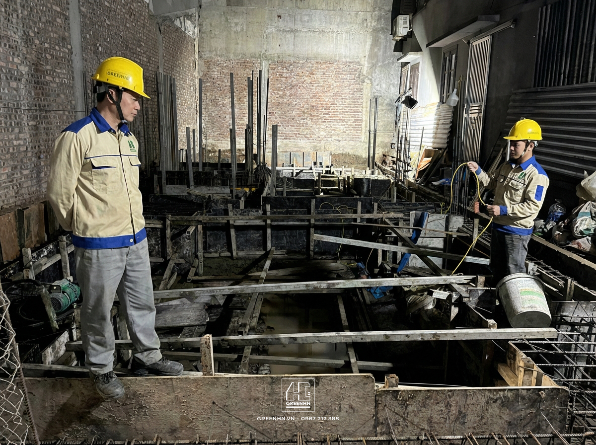 Những giọt mồ hôi rơi xuống trong đêm chính là sự cam kết thầm lặng của GreenHN. Chúng tôi không ngại khó, không ngại khổ, chỉ sợ công trình không đạt chuẩn. Với GreenHN, sự an tâm của gia chủ chính là thước đo thành công lớn nhất.