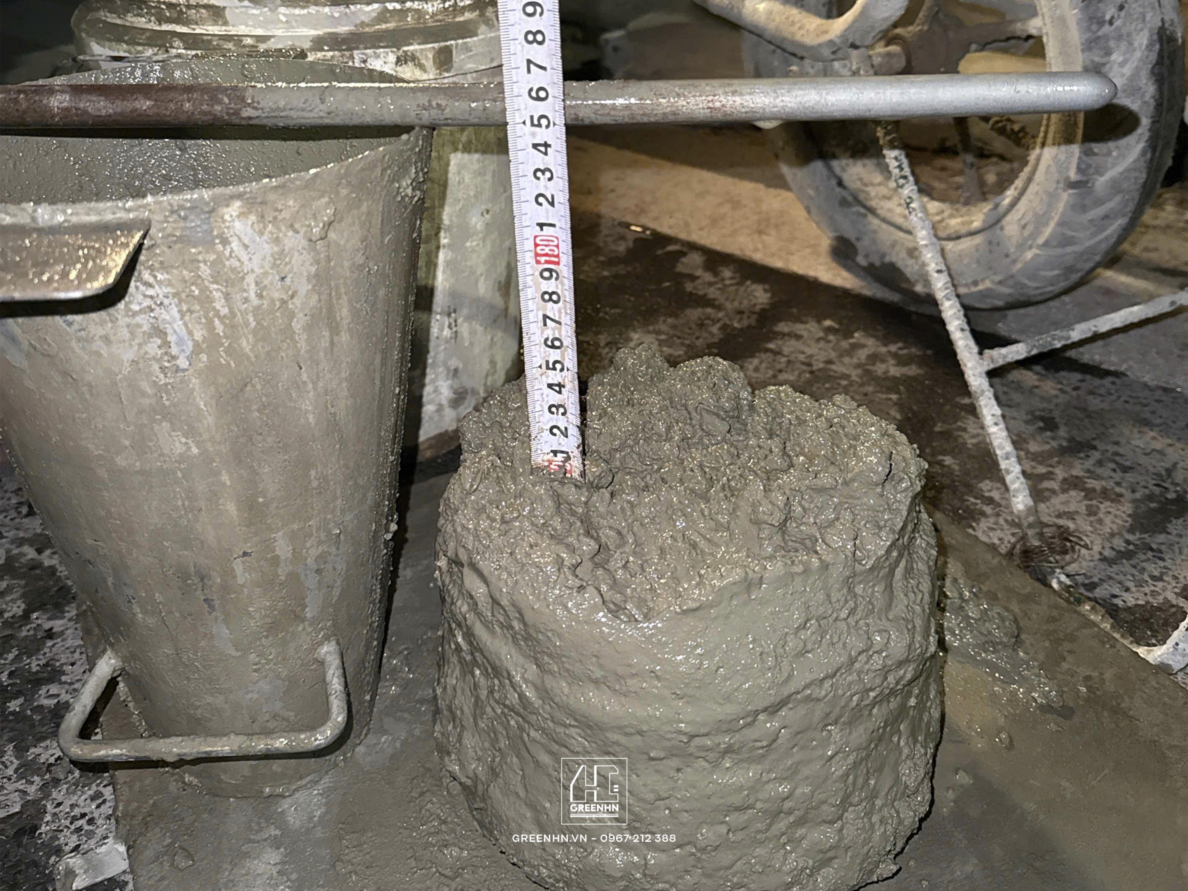 Tại công trình nhà anh Tiến, độ sụt đo được đạt chuẩn kỹ thuật.