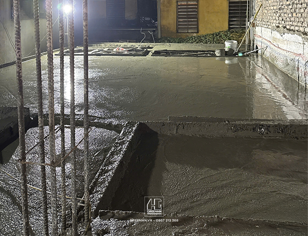 Đêm qua, tại công trình nhà phố gia đình Anh Tiến (Ba Đình, Hà Nội). Đó là sự tổng hòa giữa Kỹ thuật chuẩn chỉ - Sự giám sát khắt khe - Và những giọt mồ hôi của người thợ GreenHN.
