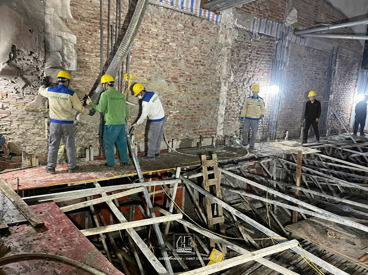 Ngay sau khi bê tông đông kết, GreenHN sẽ tiến hành: