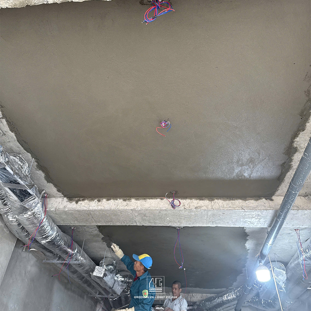 Hai hạng mục quan trọng đang được GreenHN triển khai song song: Kéo dây điện âm trần và Trát trần bê tông. Đây là những công đoạn quyết định đến cả "thẩm mỹ bề mặt" và "công năng vận hành" lâu dài của ngôi nhà. Mời Quý khách hàng cùng theo dõi quy trình thi công thực tế qua nhật ký hôm nay.