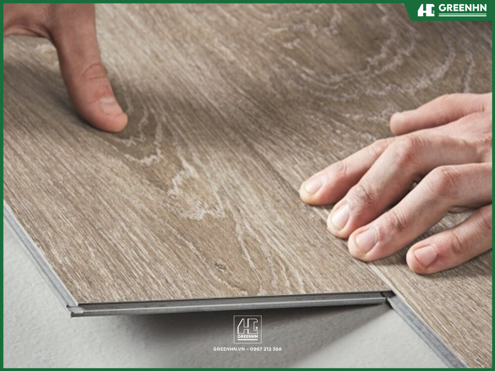 Xử lý cốt nền thật phẳng: Đây là yếu tố quan trọng nhất. Nền bê tông lồi lõm sẽ làm gãy hèm khóa của sàn nhựa do sàn nhựa mỏng hơn sàn gỗ). GreenHN luôn tiến hành cán nền tự san hoặc mài phẳng kỹ lưỡng trước khi lát.