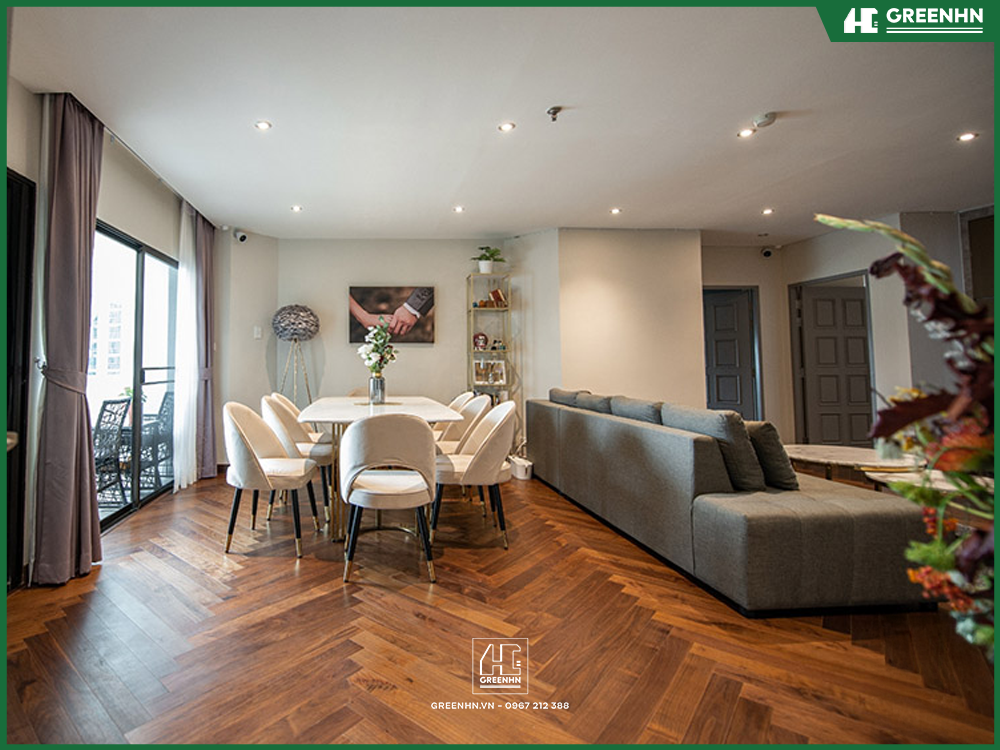 Thẩm mỹ vượt trội: Sàn gỗ tạo chiều sâu cho không gian, dễ phối với đồ nội thất cao cấp.