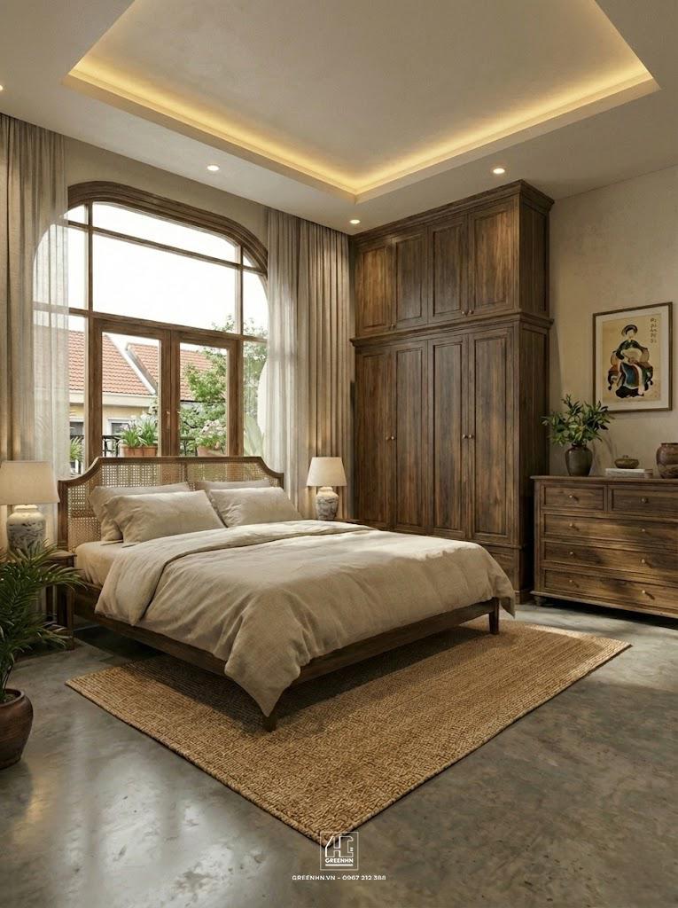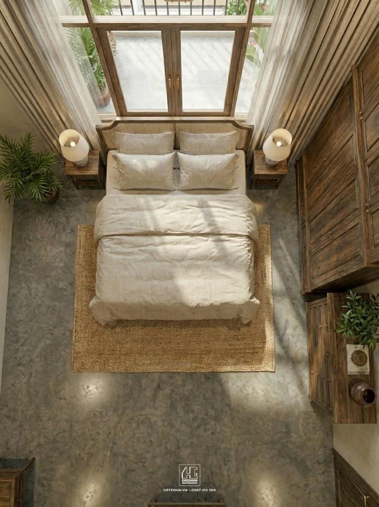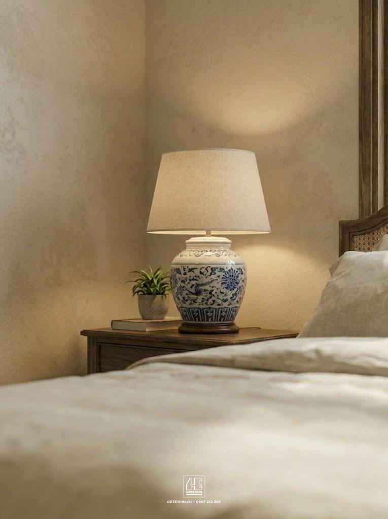 Phòng ngủ: tập trung vào sự thư giãn, ánh sáng dịu, ít chi tiết