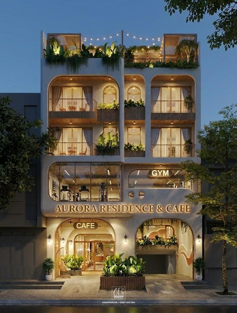 Aurora Residence & Cafe là mô hình công trình đa chức năng kết hợp lưu trú – cafe – tiện ích chăm sóc sức khỏe, được phát triển theo tinh thần urban resort (nghỉ dưỡng trong lòng phố). Công trình hướng tới nhóm khách hàng yêu thích không gian sống có cảm xúc, đồng thời tối ưu khả năng vận hành và khai thác lâu dài.